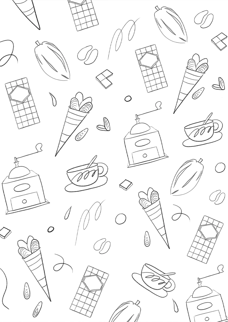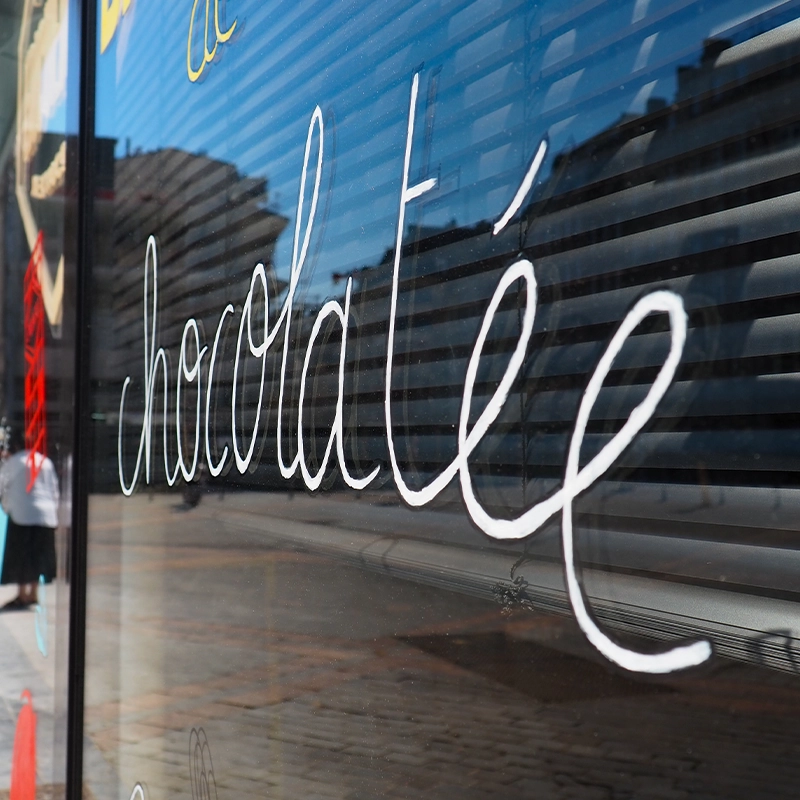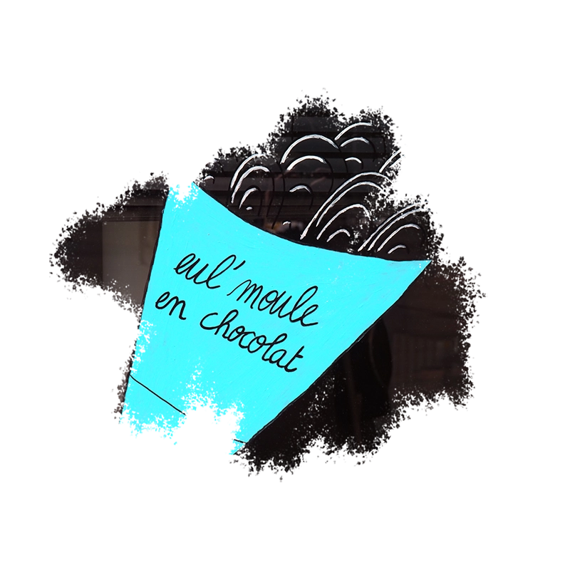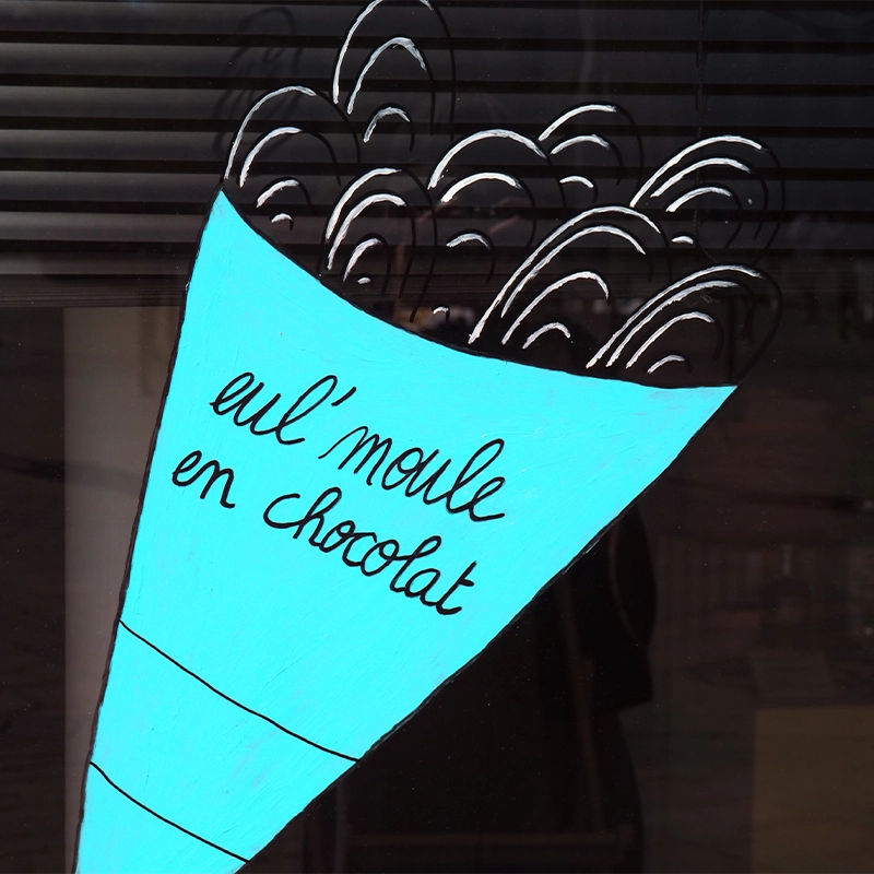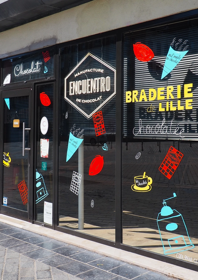 For Encuentro, a chocolate shop in Lille, I created a hand-painted storefront illustration along with an original artwork designed especially for the Braderie de Lille.